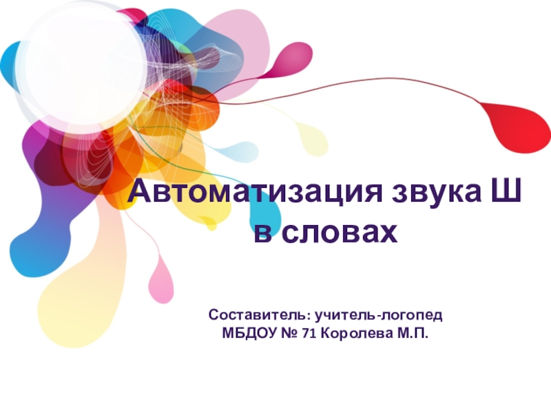Слайд 1Автоматизация звука Ш в словах Составитель: учитель-логопед МБДОУ № 71 Королева М.П.