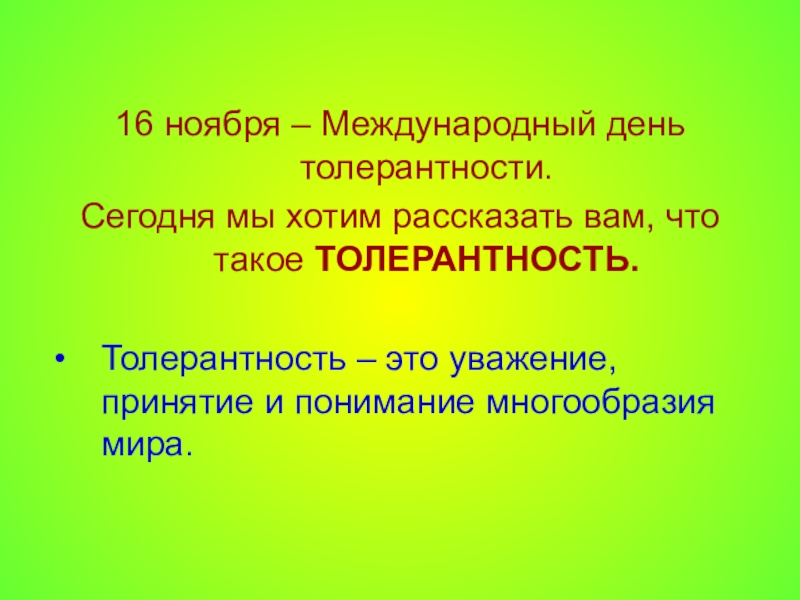 Толерантность – это уважение, принятие и понимание многообразия мира.