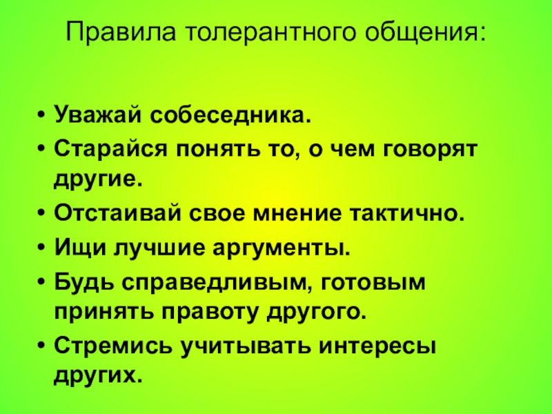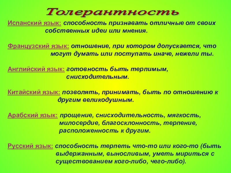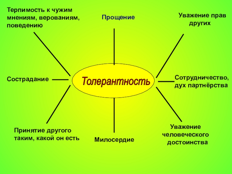 Слайд 8Толерантность – это благосклонность и уважение к другому.
