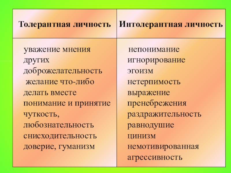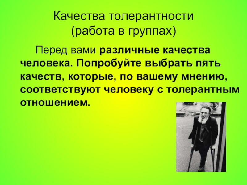 пять качеств, которые, по вашему мнению, соответствуют человеку с толерантным отношением.