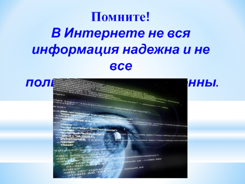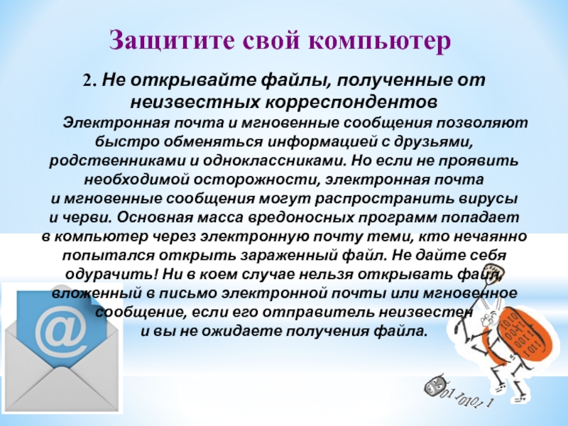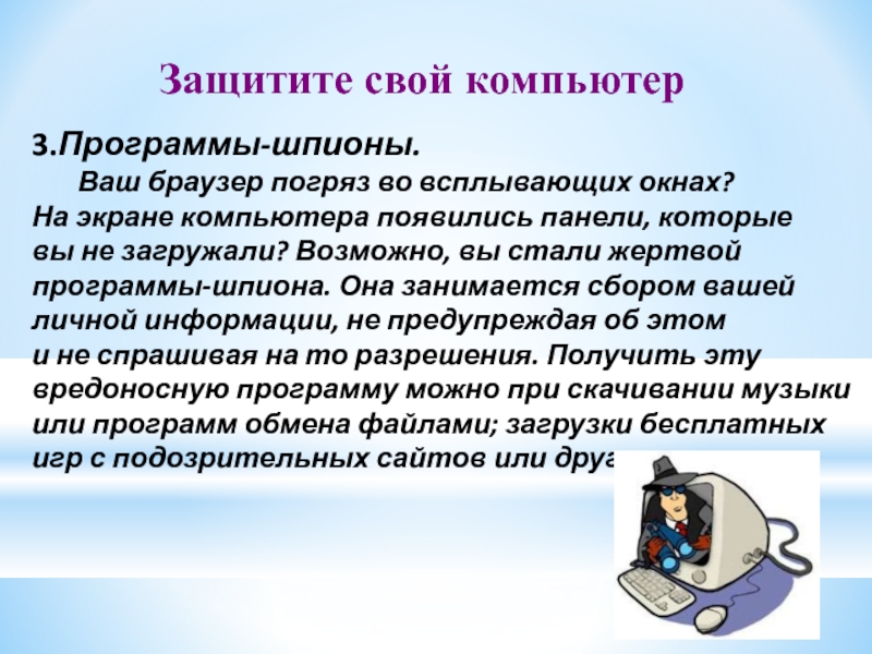 Данная презентация является демонстрационным материалом для проведения внеклассных мероприятий по проблемам информационной безопасности.