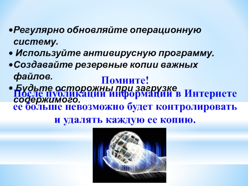 После публикации информации в Интернете ее больше невозможно будет контролировать и удалять каждую ее копию.