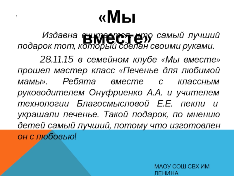 МАОУ СОШ СВХ ИМ ЛЕНИНА