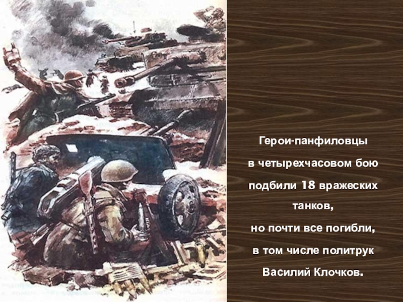 Слайд 3028 бойцов дивизии генерала И. В. Панфилова во главе с политруком