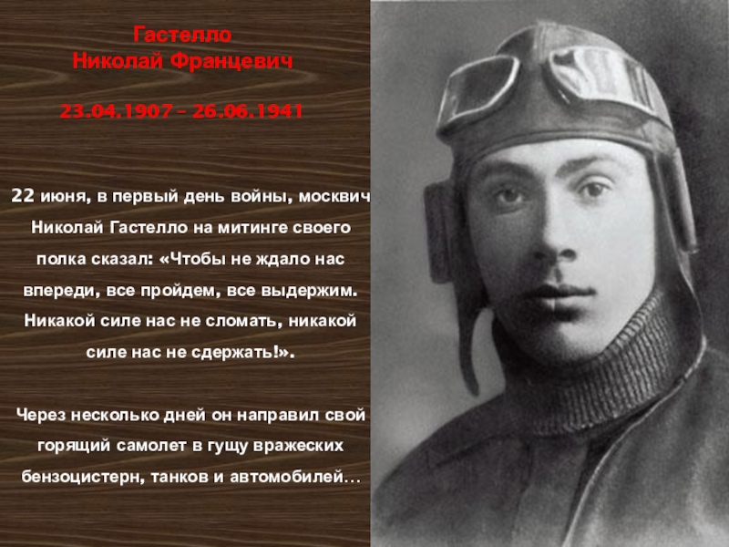 Слайд 42Николай Францевич Гастелло родился в Москве. В 16 лет началась его трудовая деятельность: сначала