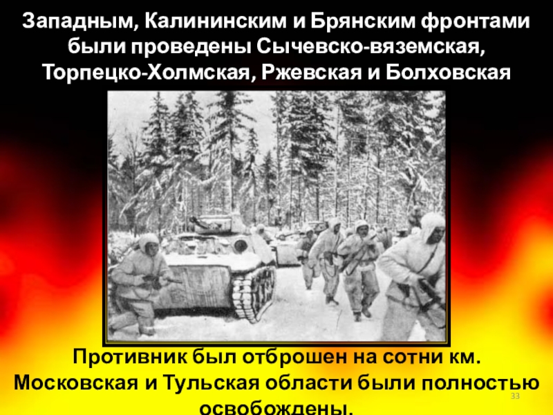 Западным, Калининским и Брянским фронтами были проведены Сычевско-вяземская, Торпецко-Холмская, Ржевская и Болховская наступательные операции.