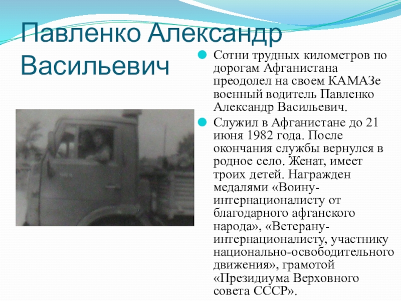 КАМАЗе военный водитель Павленко Александр Васильевич.