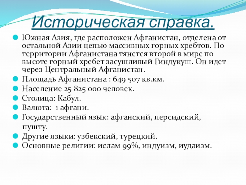 Южная Азия, где расположен Афганистан, отделена от остальной Азии цепью