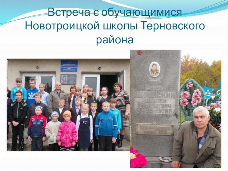 Слайд 28Встреча с обучающимися Новотроицкой школы Терновского района