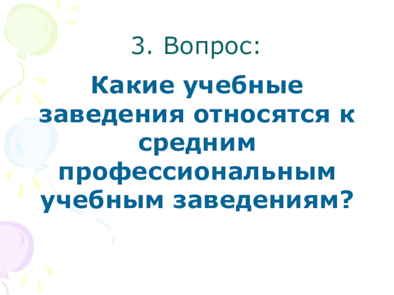 3. Вопрос:Какие учебные заведения относятся к средним профессиональным учебным заведениям?