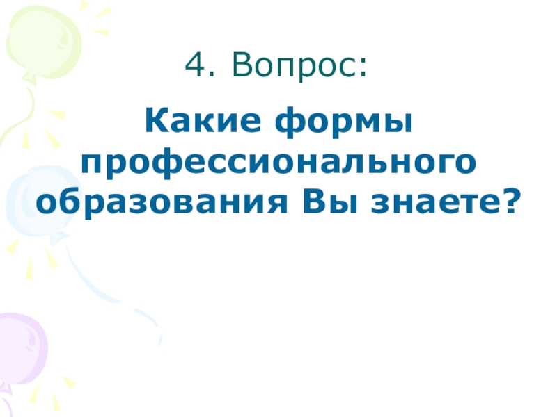 4. Вопрос:Какие формы профессионального образования Вы знаете?
