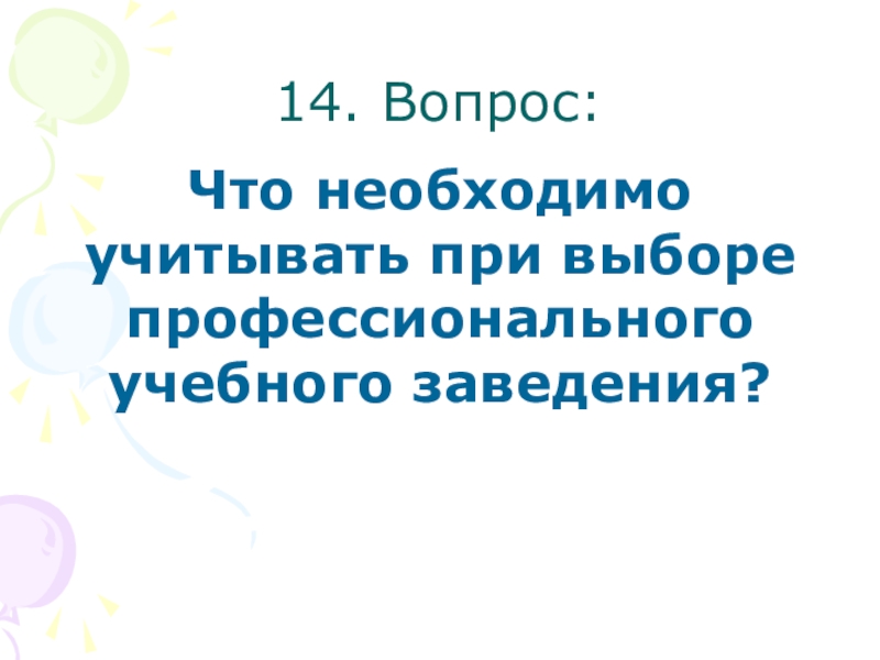 14. Вопрос:Что необходимо учитывать при выборе профессионального учебного заведения?