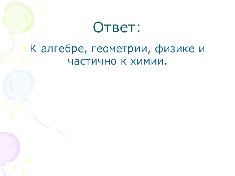 Ответ:К алгебре, геометрии, физике и частично к химии.