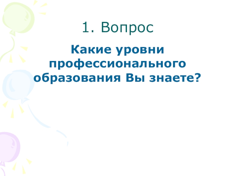 1. ВопросКакие уровни профессионального образования Вы знаете?