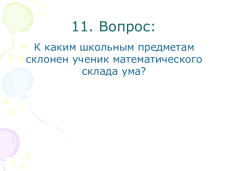 11. Вопрос:К каким школьным предметам склонен ученик математического склада ума?