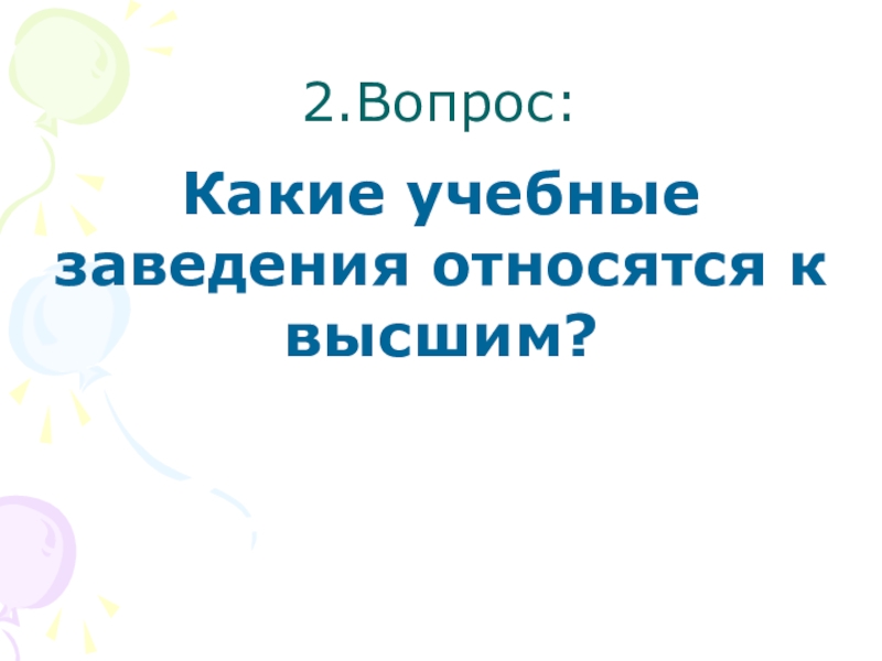 2.Вопрос:Какие учебные заведения относятся к высшим?