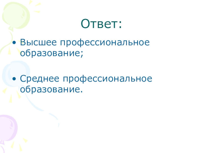 Ответ:Высшее профессиональное образование;Среднее профессиональное образование.