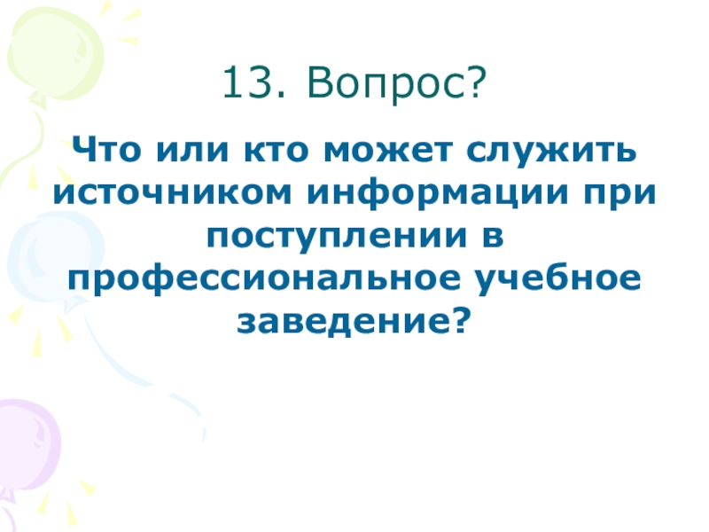 13. Вопрос?Что или кто может служить источником информации при поступлении в профессиональное учебное заведение?