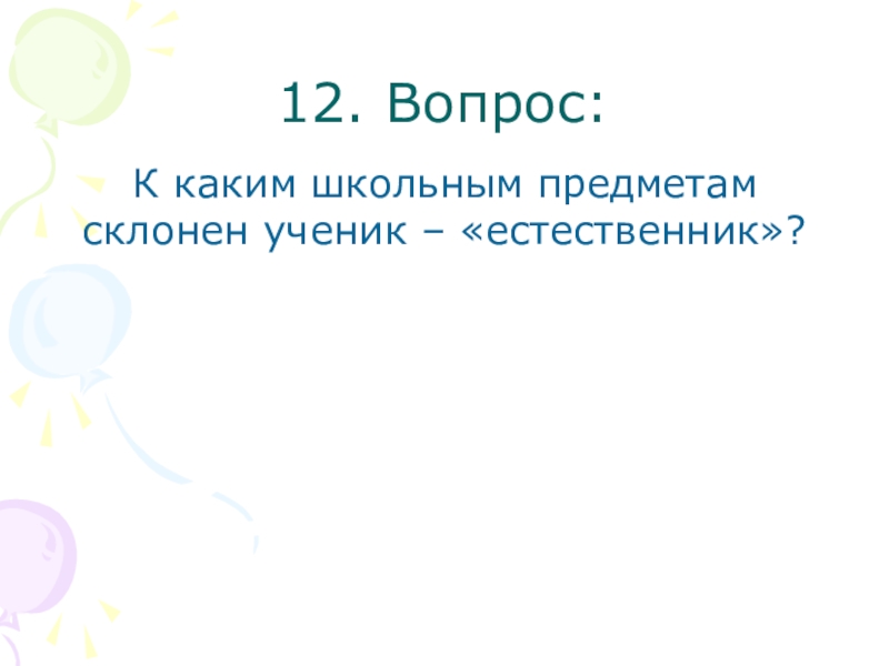 12. Вопрос:К каким школьным предметам склонен ученик – «естественник»?