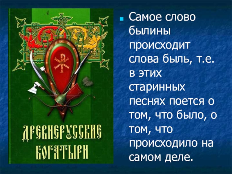 Слайд 3Самое слово былины происходит слова быль, т.е. в этих старинных песнях
