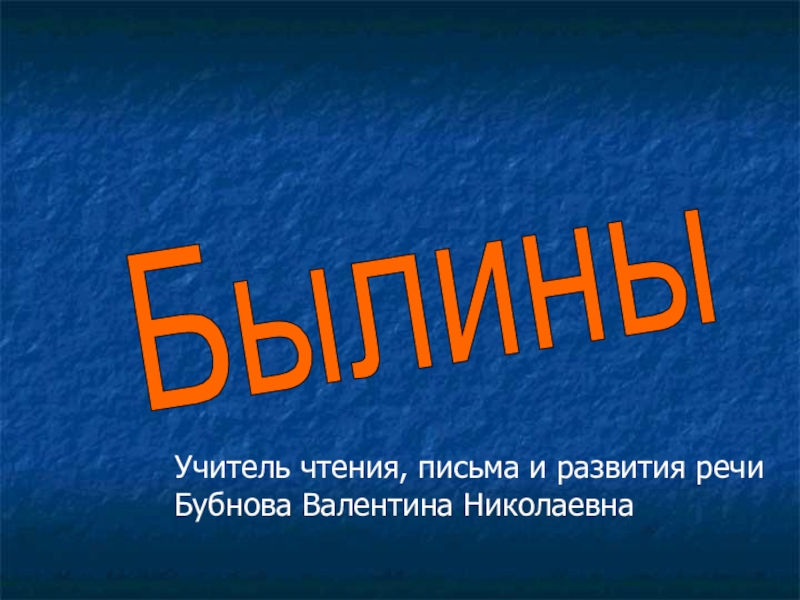 Былины Учитель чтения, письма и развития речи Бубнова Валентина Николаевна