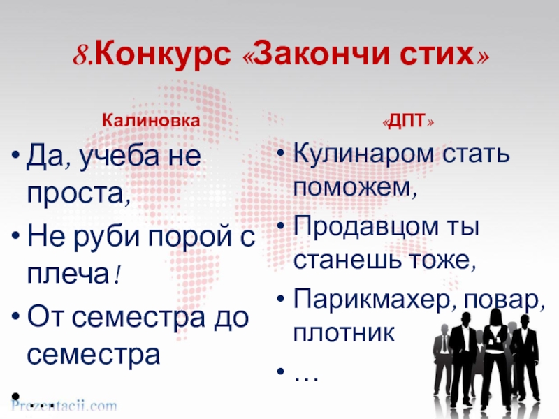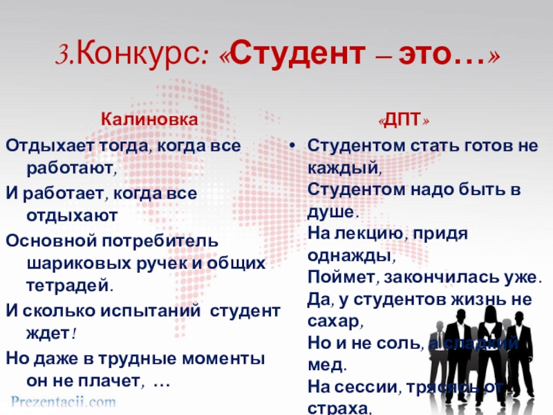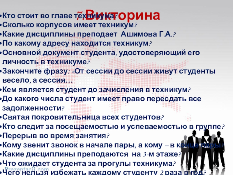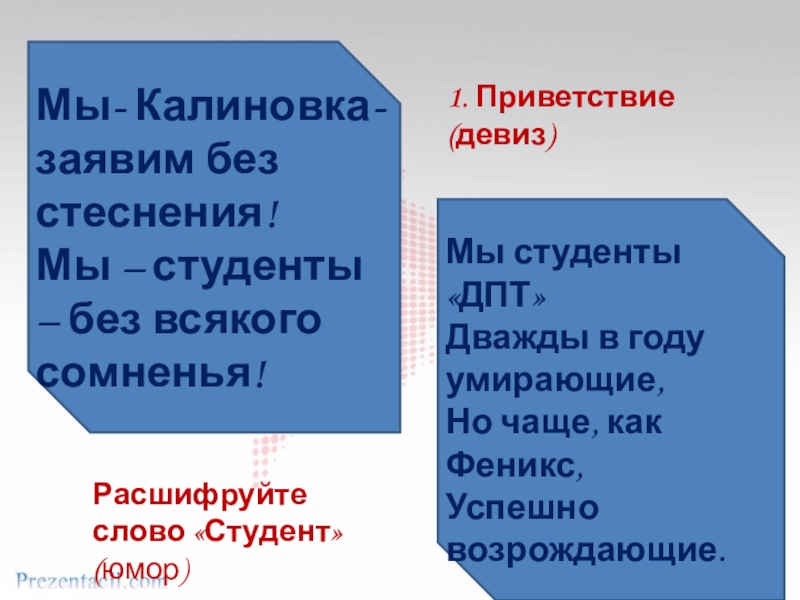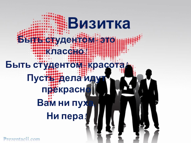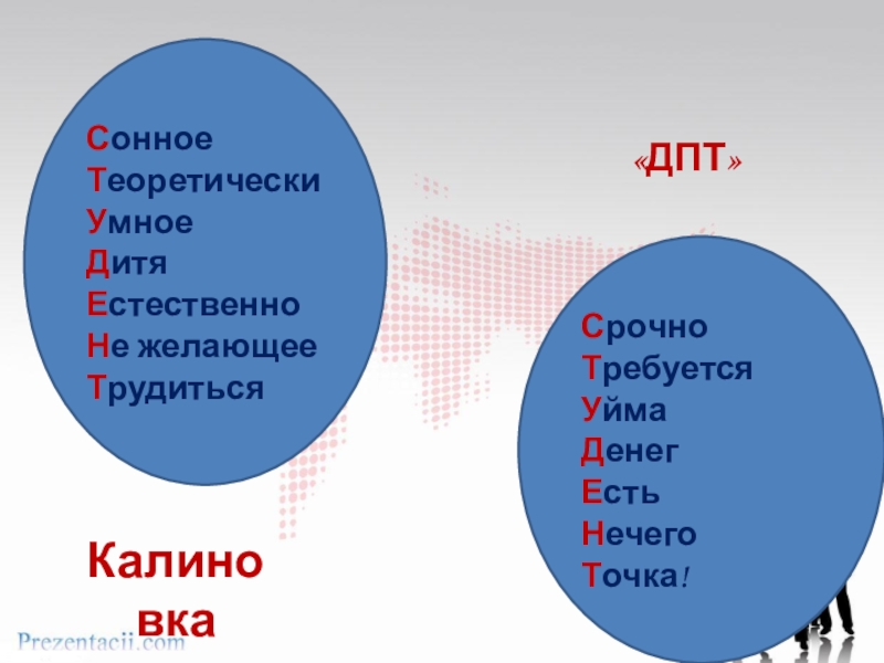 Это сайт презентаций, где можно хранить и обмениваться своими презентациями, докладами, проектами, шаблонами в формате PowerPoint с другими пользователями. Мы помогаем школьникам, студентам, учителям, преподавателям хранить и обмениваться учебными материалами.