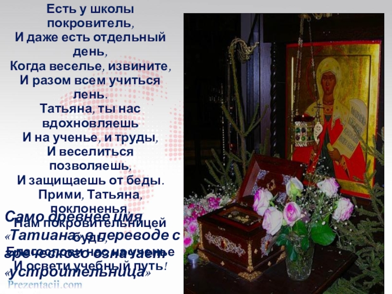 Само древнее имя «Татиана» в переводе с греческого означает «устроительница»