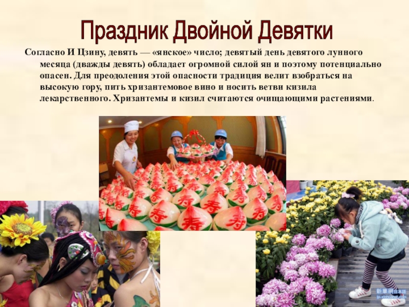 Слайд 14Согласно И Цзину, девять — «янское» число; девятый день девятого лунного