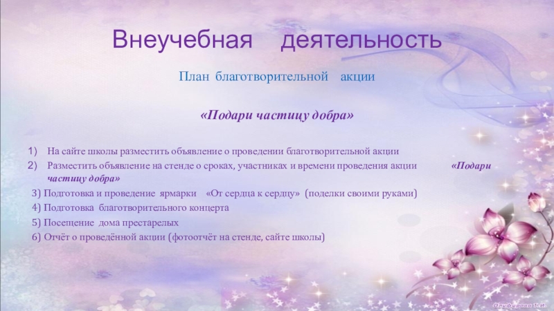 Разместить объявление на стенде о сроках, участниках и времени проведения акции «Подари частицу добра»