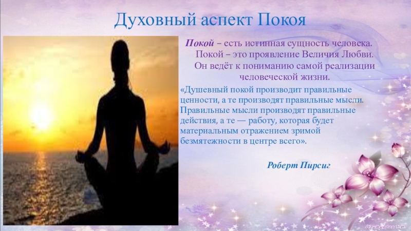 Покой исходит из нашего внутреннего существа и проявляется как удовлетворённость.