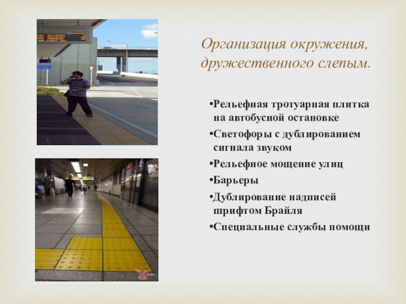 поводырей используют специально обученных животных, помогающих слепым и слабовидящим людям передвигаться вне помещений и избегать препятствий — собаки, а сейчас лошади-поводыри и даже роботы-поводыри…
