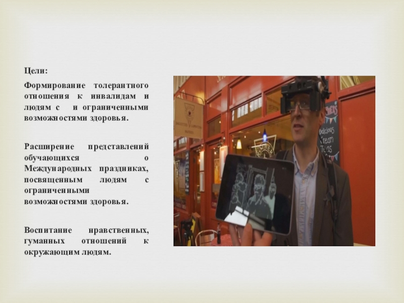 Расширение представлений обучающихся о Международных праздниках, посвященным людям с ограниченными возможностями здоровья.