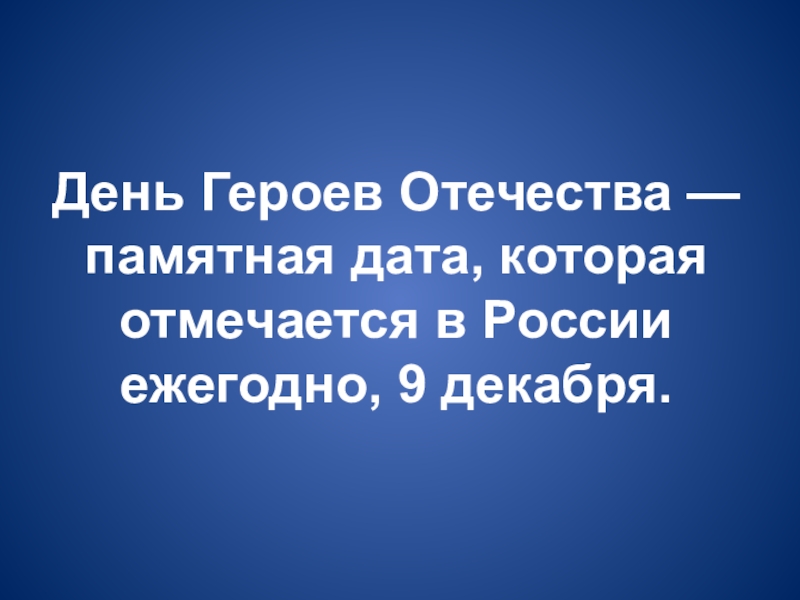 Слайд 3День Героев Отечества — памятная дата, которая отмечается в России ежегодно,