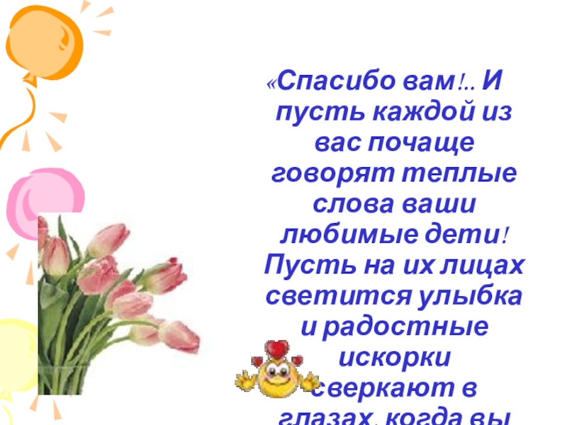 «Спасибо вам!.. И пусть каждой из вас почаще говорят теплые слова ваши любимые дети! Пусть на их