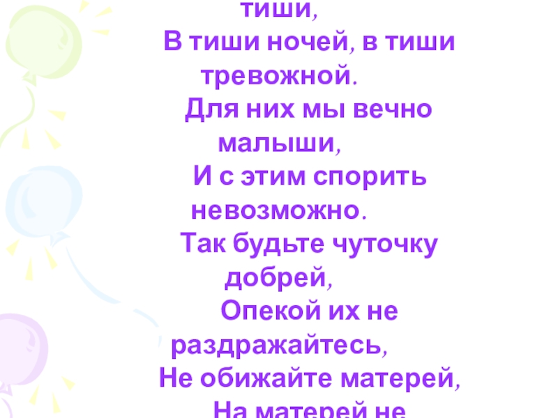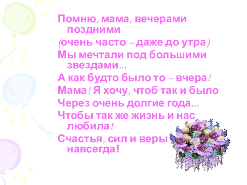 можем пооткровенничать, пожаловаться, побеседовать, доверить свои тайны самому дорогому человеку на земле – маме.