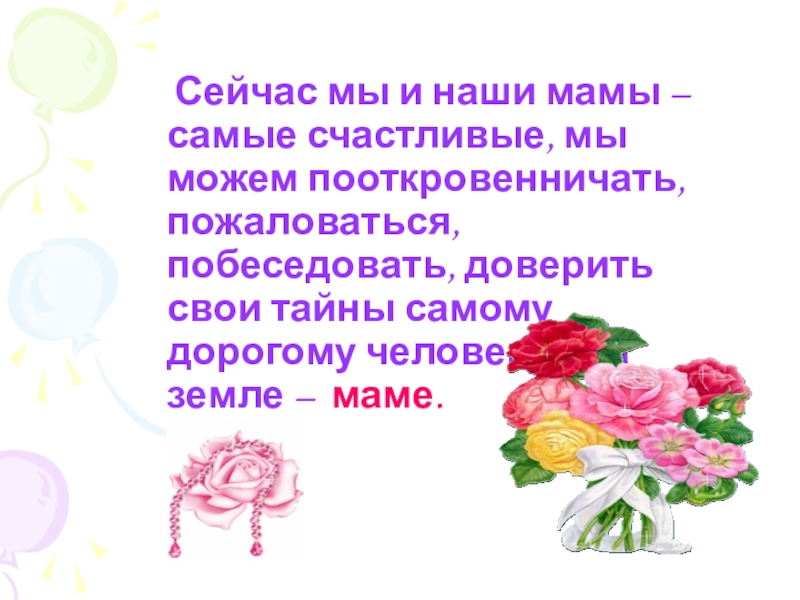 Слайд 8 Сейчас мы и наши мамы – самые счастливые, мы