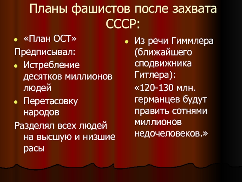 Слайд 10Планы фашистов после захвата СССР: