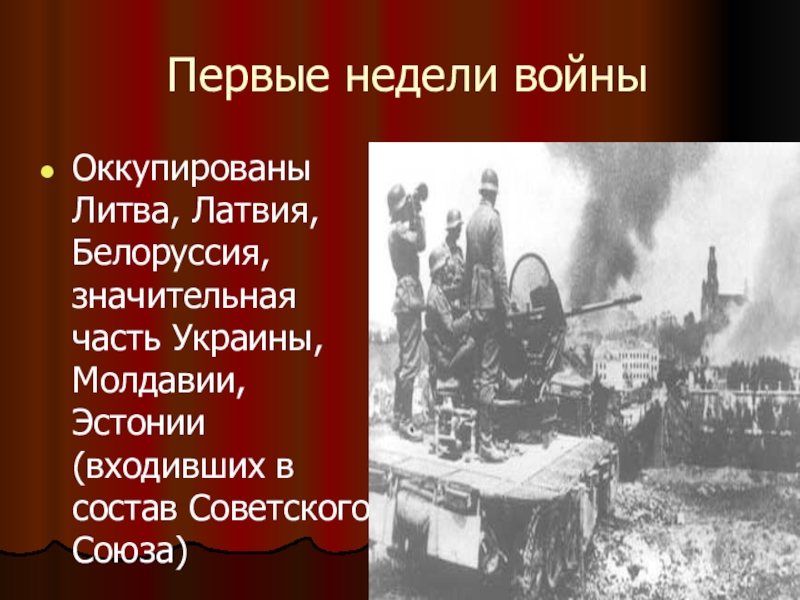 Слайд 12Первые недели войны