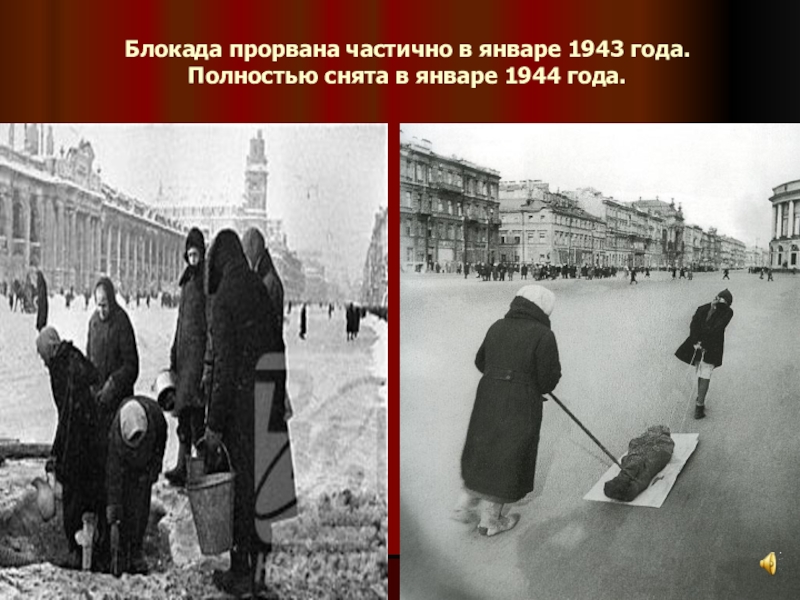 Слайд 23Блокада прорвана частично в январе 1943 года.