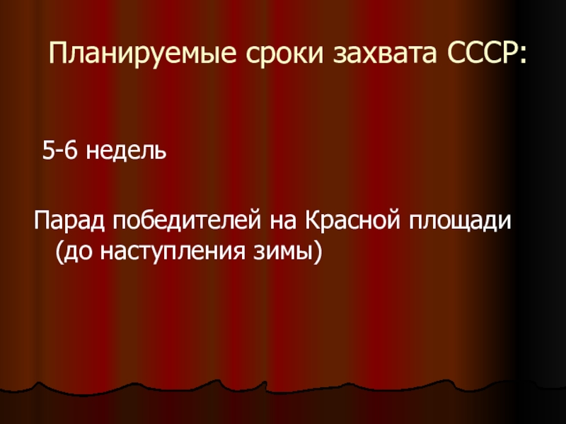 Слайд 9Планируемые сроки захвата СССР: