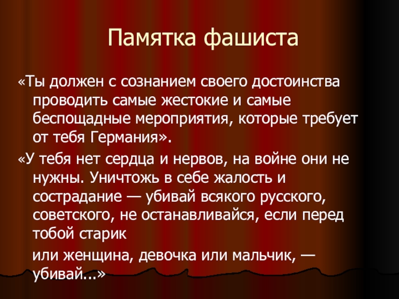 Слайд 13Памятка фашиста