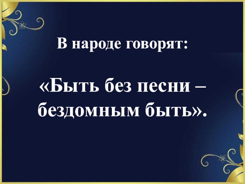 Слайд 9 В народе говорят:  «Быть без песни – бездомным быть».