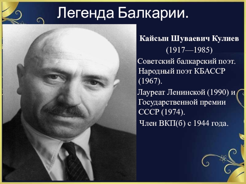 Советский балкарский поэт. Народный поэт КБАССР (1967).