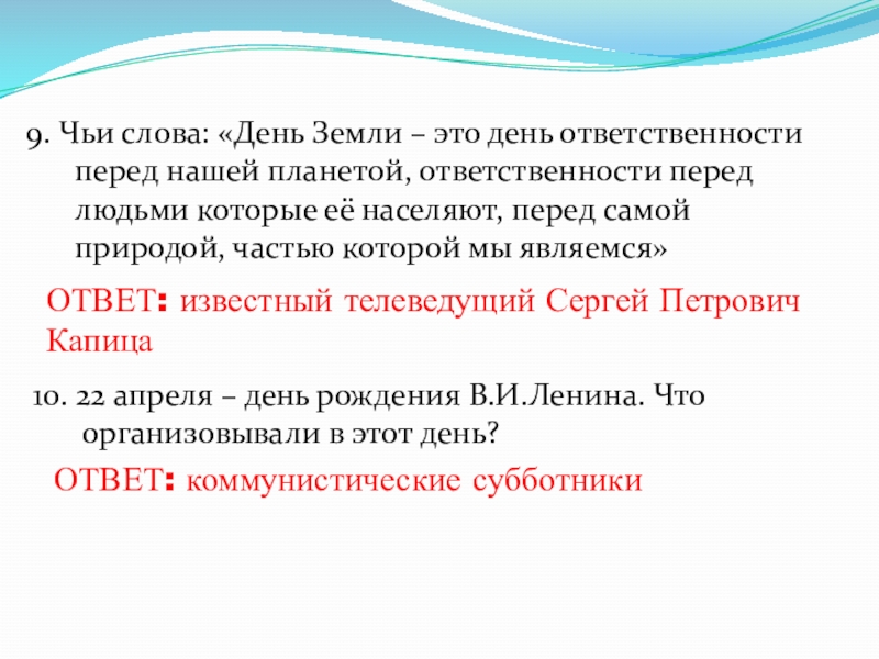 10. 22 апреля – день рождения В.И.Ленина. Что организовывали в этот день?