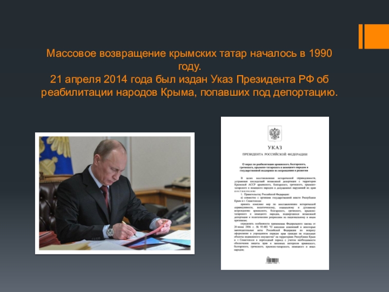 был издан Указ Президента РФ об реабилитации народов Крыма, попавших под депортацию.