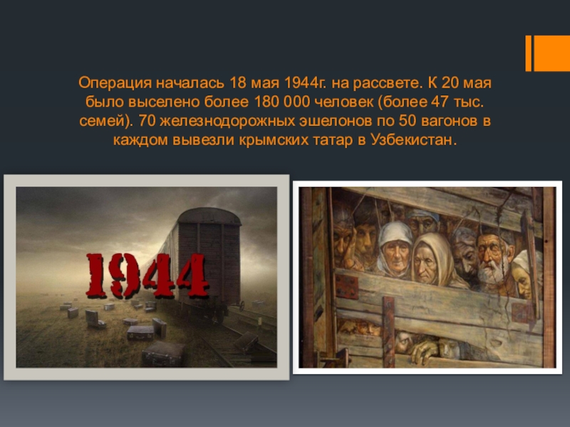 Операция началась 18 мая 1944г. на рассвете. К 20 мая было выселено более 180 000 человек (более