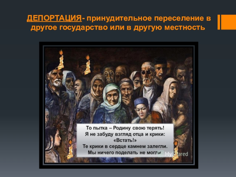 Слайд 2ДЕПОРТАЦИЯ- принудительное переселение в другое государство или в другую местность
