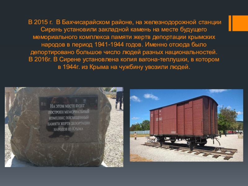 Слайд 11В 2015 г. В Бахчисарайском районе, на железнодорожной станции Сирень установили