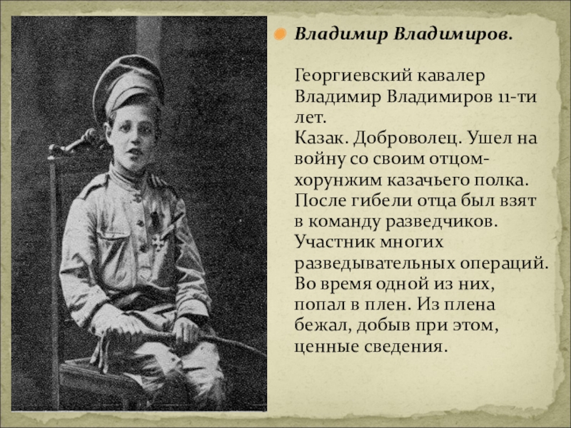 Георгиевский кавалер Владимир Владимиров 11-ти лет.