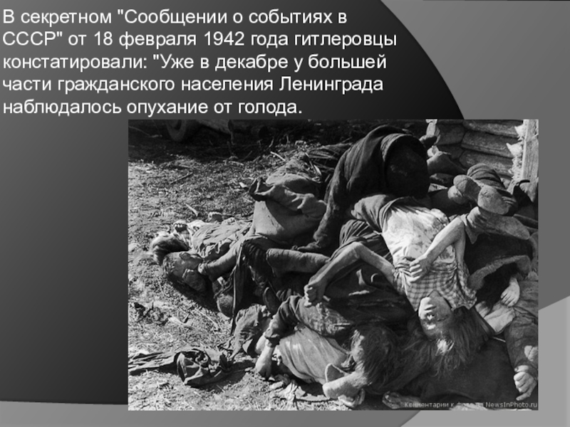 года гитлеровцы констатировали: "Уже в декабре у большей части гражданского населения Ленинграда наблюдалось опухание от голода.